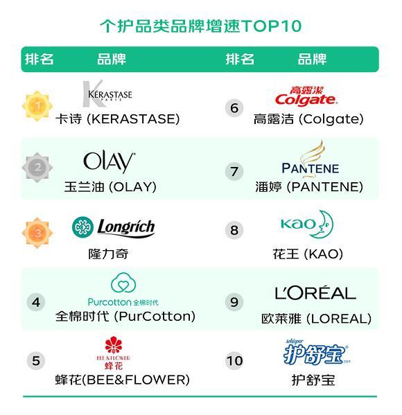 京东11.11前夕,10月13日,京东超市发布个人护理类商品品牌增速十强榜单,卡诗、玉兰油、隆力奇、全棉时代、蜂花、高露洁、潘婷、花王、欧莱雅和护舒宝十大品牌上榜。