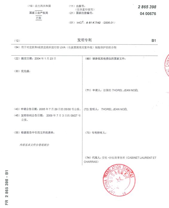 * D.A.F.皮肤科学高级配方发明专利号:ZL200480041666.6