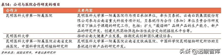 公司注重研发,与医院合作。2021年,公司获云南省委、省政府以及云南省科技厅联合授予“云南特色植物提取实验室”,公司全资子公司云南云科获授牵头承办云南特色植物提取实验室建设工作。云南特色植物提取实验室系经云南省委、省政府批准成立的独立法人实体新型研发机构,由贝泰妮牵头建设,云南省药物研究所、云南大学、云南农业大学参与建设的云南特色植物产业研发公共平台。云南特色植物提取实验室将以产业化为导向,聚焦基于云南特色植物的功性化妆品和功能性食品。