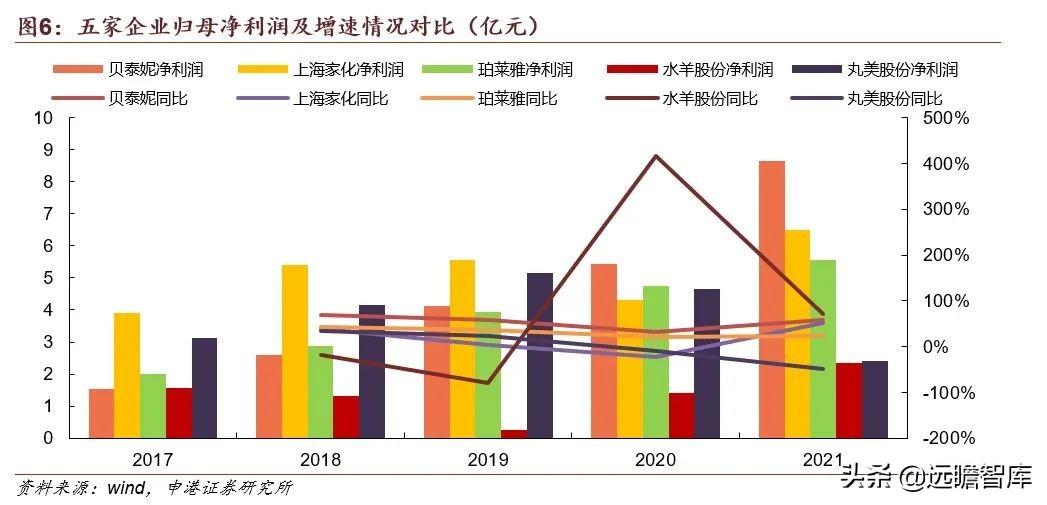 五家龙头化妆品上市企业对比来看: