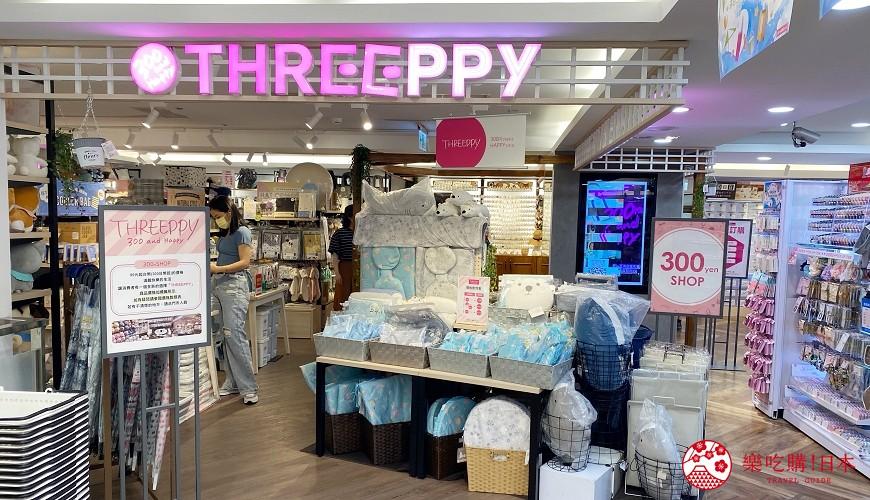 「THREEPPY」是大创旗下的子品牌,以 「300日圆开启的快乐生活」为主要标语,店内产品均一价300日元为主,和大创的多元性不同,THREEPPY以30~40岁的女性为目标客群,提供低价并富有设计性的高品质杂货小物,在日本和海外有64间分店。