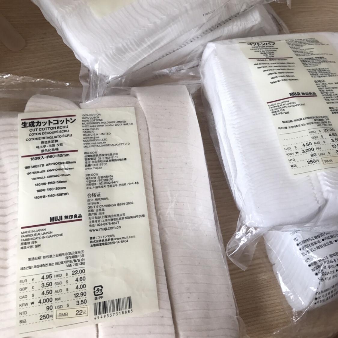 出名的化妆棉,无漂白,,表面还有一些黑色的棉花籽,很厚实柔软松散的手感,无压边,可以分为四层,但是会比较容易拉丝掉絮,所以还是比较建议成片或者撕成两半来卸妆使用,它的吸水性不错,湿敷会有点费水,二次清洁和拍化妆水都很不错。