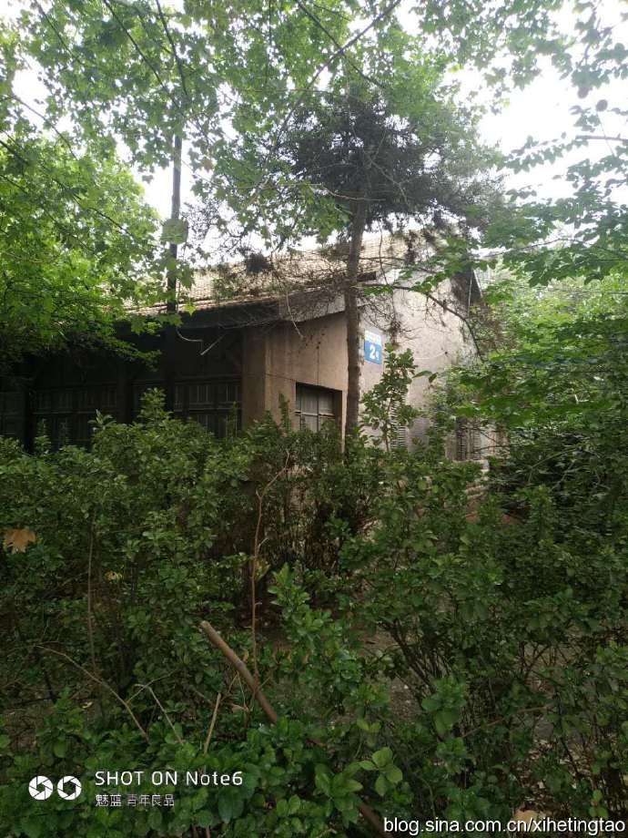 小院铁门陈旧锈蚀,看来这里已经很长时间没有开启,没人光顾。 透过铁栅栏和茂密的绿树草蔓,可看到里面的尖顶法式一层别墅,小院绿树婆娑,小径逶迤,闹市取静,别有风韵。