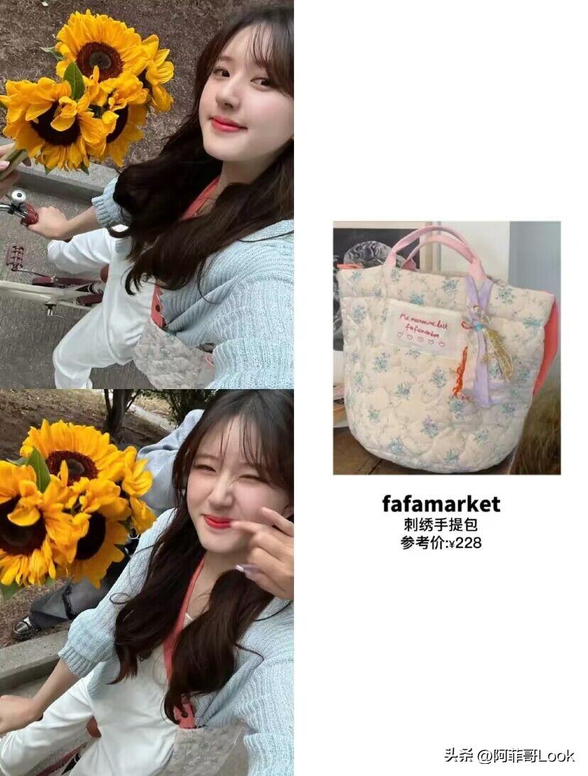 赵露思也背过一个刺绣手提包,这款包真的挺好看的,印花相当的少女心,可以手提,也可以斜挎。这款包来自一个韩国品牌fafamarket,这是一个轻奢家纺品牌,价格228元。