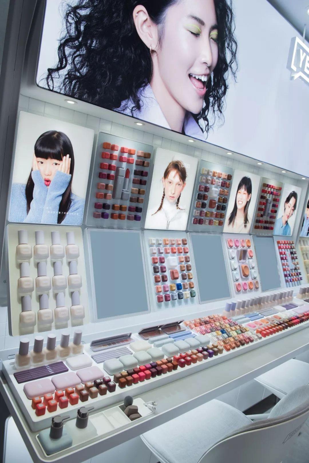 实际上,让婷婷感到贴心的正是Genius Bar上手机充电接口这一细节设计。在媗扬化妆品店内,YES!IC似乎是别具一格的存在,高级的莫兰迪色搭配圆角的方形产品造型,142个SKU饱满地陈列在Genius Bar上,简约又不失设计感,吸引了各个年龄段的消费者前来试用体验。