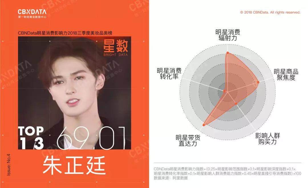 第一财经商业数据中心(CBNData)近日发布了星数2018三季度“CBNData明星消费影响力榜”,基于阿里数据,以2018年第三季度为测算周期,发布了1个季度总榜、1个人气榜、1个果榜、2个性别榜、4个代际榜、7个品类榜及20个城市榜,通过综合五大明星消费影响力指数,揭示明星的消费影响力,综合衡量明星消费价值。