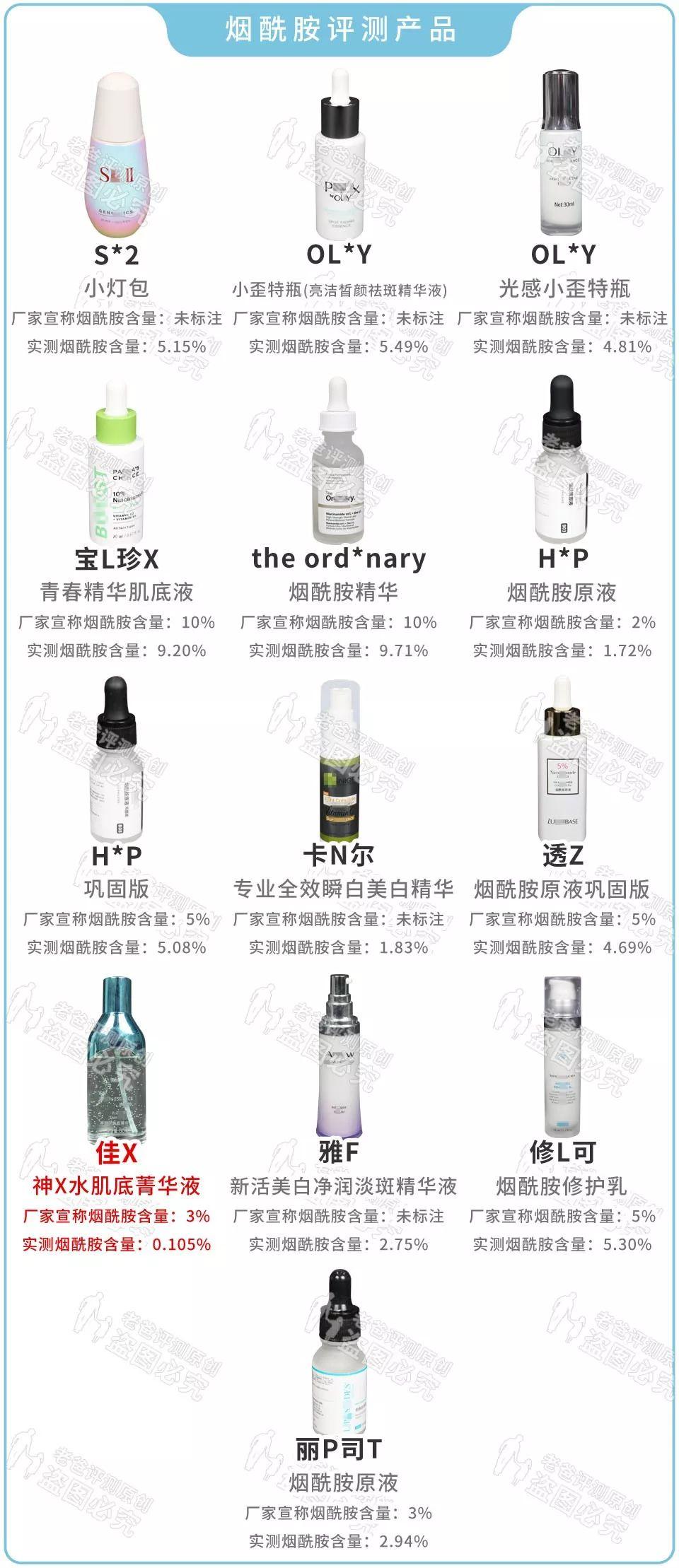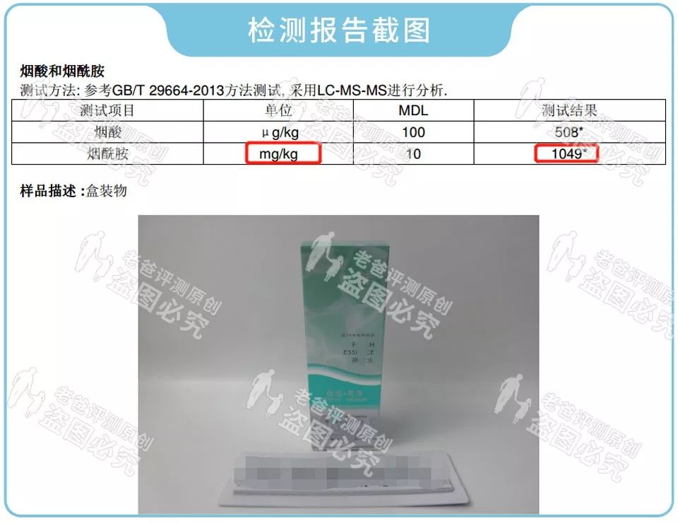 大家都宣称自己产品里含有烟酰胺,到底含有多少,与厂家宣称的是否一致?我们将样品送到有资质的实验室检测了烟酰胺含量。
