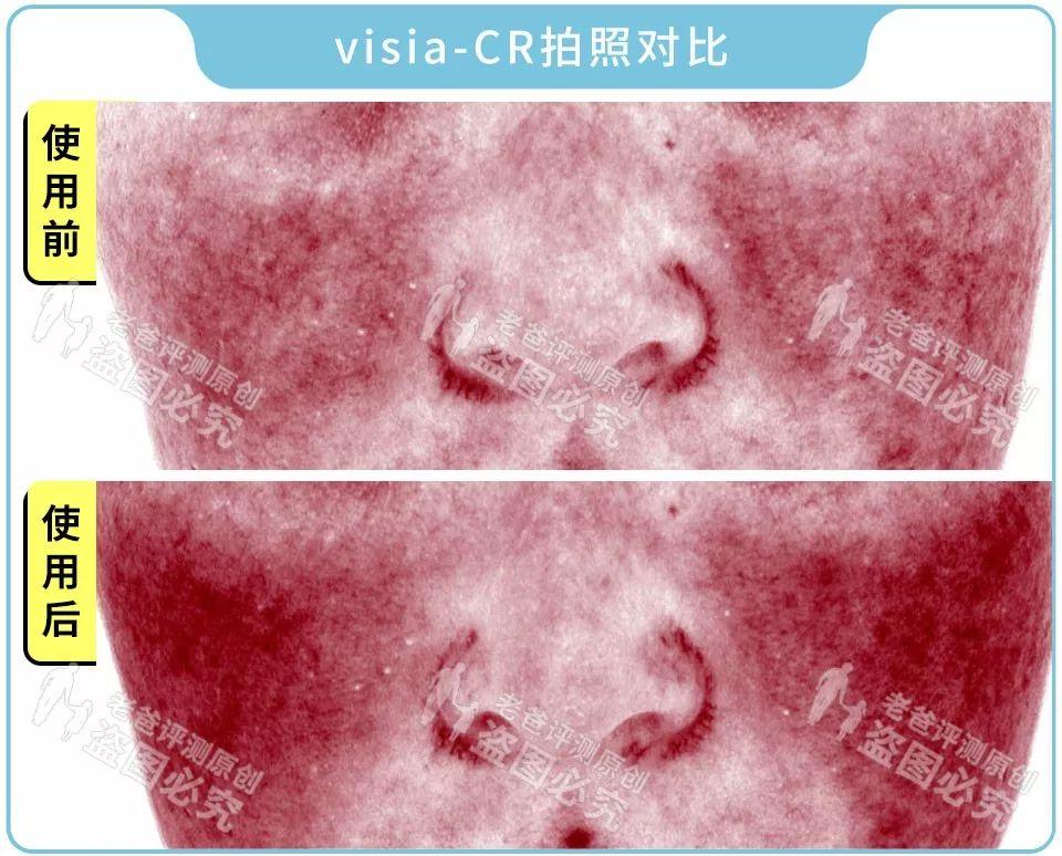 外表看上去像是打了腮红,但 visia-CR 实拍下,简直红的有点可怕。所以大家使用这类产品时,建议从低浓度的产品入手,皮肤耐受后再尝试高浓度的。建议搭配舒缓修护类产品一起使用,特别是敏感肌、角质薄的人群。
