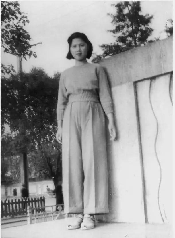 70年前的茅君瑶是油画系的学生,当时她正在西子湖畔写生,穿着红色上衣和绿色背带裤,脸上带着盈盈笑意▼
