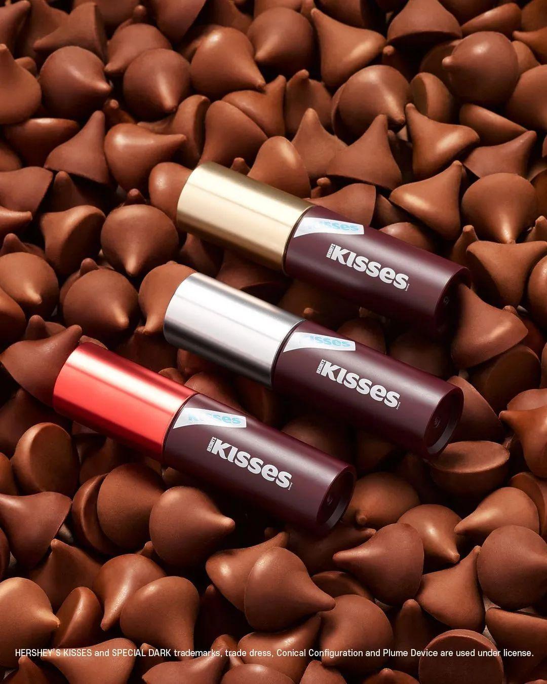 这次的合作产品包括3款眼影盘、3只唇釉、化妆刷及KISSES巧克力造型的化妆包