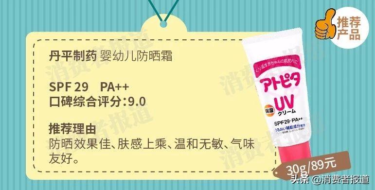 防晒力口碑并列第一的丹平制药婴幼儿防晒霜则有点“脱俗”:虽然防晒系数并不出挑,只是SPF29,PA++,但却意外地几乎全是好评:“防晒果不错”、“防晒果超赞”、“带去海边玩了一天,没怎么晒黑”、“出去一天爬山,没见晒黑”。