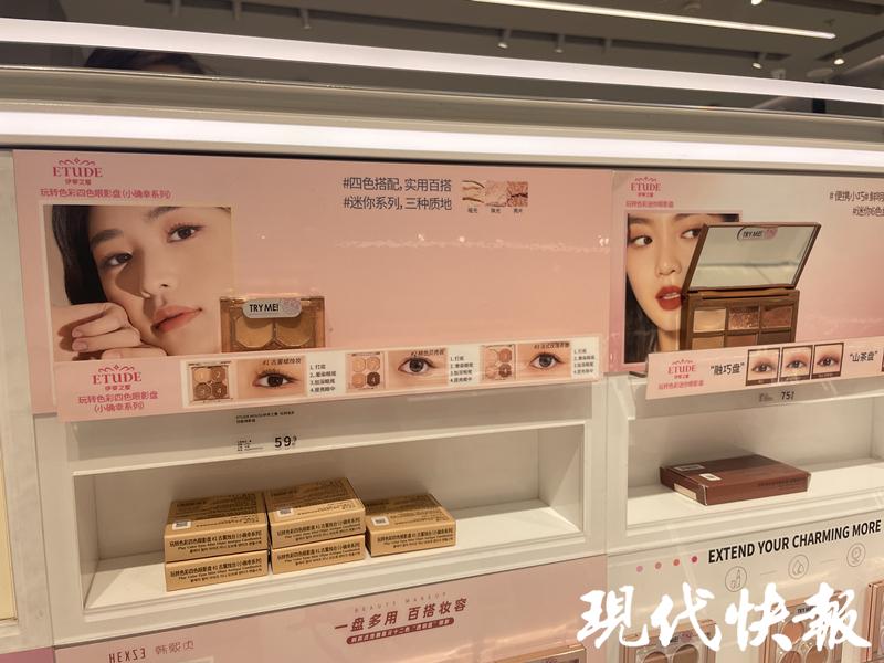 现代快报记者注意到,在美妆集合店内,以伊蒂之屋为代表的韩妆仅占一小块区域,店内更多的柜台,则被国货美妆占领。所有商品都放置在统一设置的货架上,伊蒂之屋的产品在其中并不是特别突出。