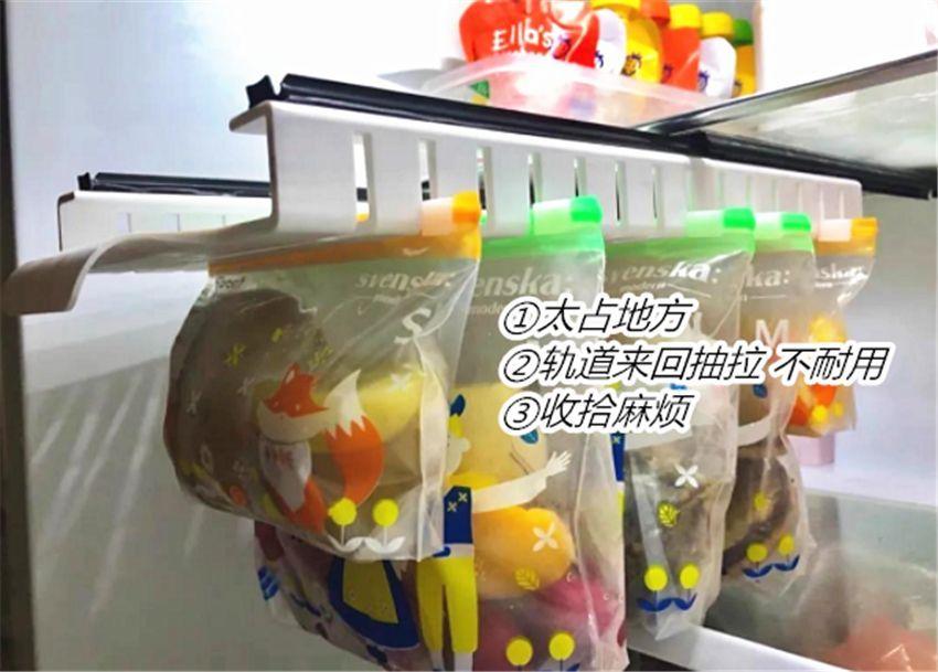 看起来挺实用的轨道架,实际上卡在冰箱隔板间,反而缩减了储物空间,看着有些多余!而且来回推拉取物,受力单一,时间久了被食材压变形......