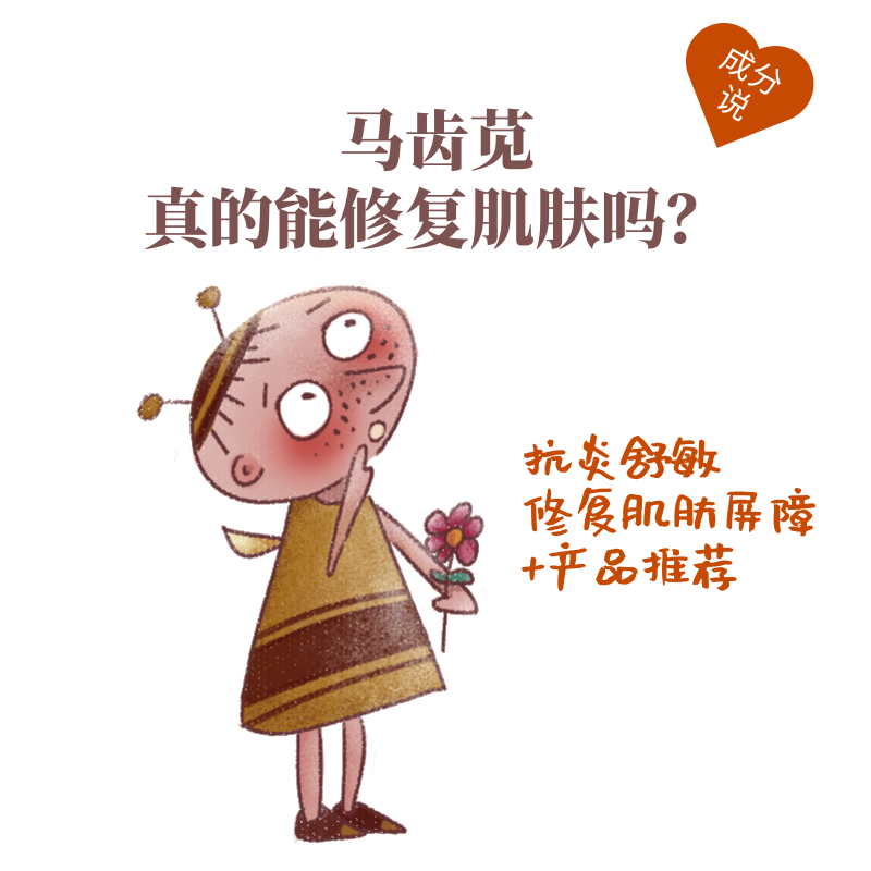 马齿苋是护肤行业中,已经是研究很成熟的植物成分啦。马齿苋中含有大量的黄酮,多糖,生物碱类物质,具有丰富的生物活性。具有抗炎,减轻肌肤刺痛,促进肌肤修复的功。