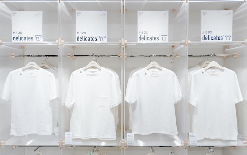 不同材质的白T,想装满你的衣柜走进西单的delicates,与三里屯店的确有些不一样。除了空间上变大之外(300+平方米),这里还出现了较为的区域划分,形成了集合白T档案馆、定制体验区和生活方式区。