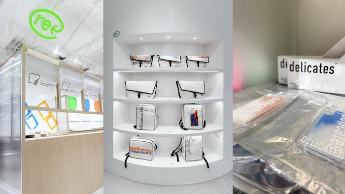 re-delicates“可持续解决方案”,一切产品皆可从白T中来回收计划re-delicates,在店内被的标识出来,也成为了delicates的一大特色。除了回收衣物进行价格抵扣外,一些旧的白T回收后被二次研发,通过设计和特殊技术加工,还能变成一款专属印记的新包。