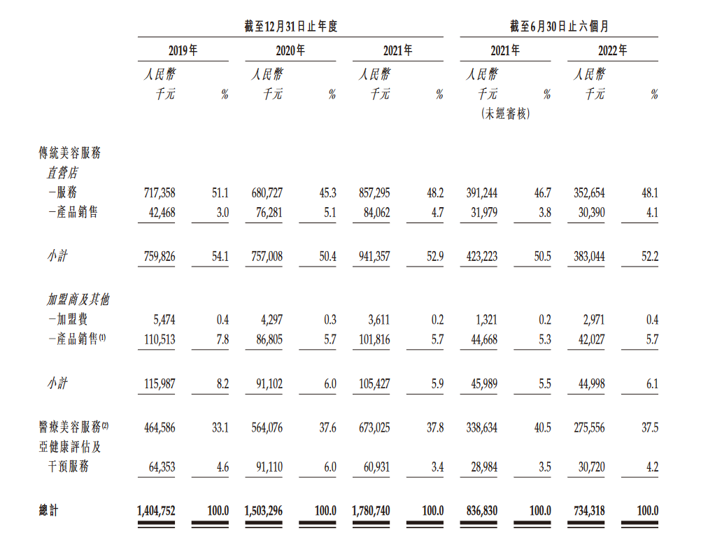美丽田园表示,按2021年收益计,公司是中国大的传统美容服务提供商和第四大非外科手术类医疗美容服务提供商,分别占市场份额的0.2%及0.6%。