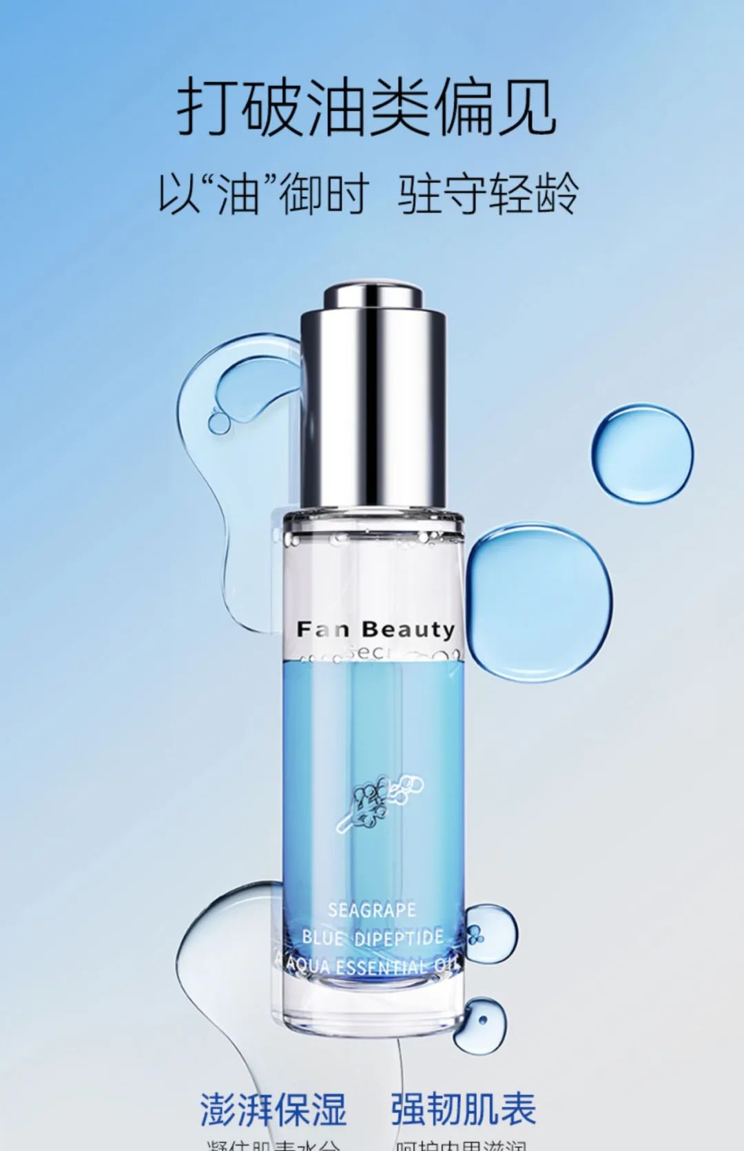 范冰冰创建的个人美妆品牌Fan Beauty Secret,近期推出新品海葡萄蓝琉璃水养精粹油。在「水油同补」「以油润肤」的基础上升级油敷理念,Fan Beauty Secret研发出「以油凝龄」的护肤新概念。