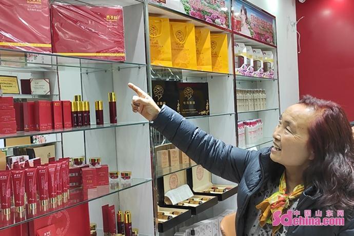山东乔子红生物科技有限公司总经理赵新兰说:“开始的时候,大家不了解牡丹产品,我们真的是自己往外面送,等于说是在亲朋好友间口口相传,用过我们产品的人,都在打听,这个牡丹化妆品是哪里生产的。”