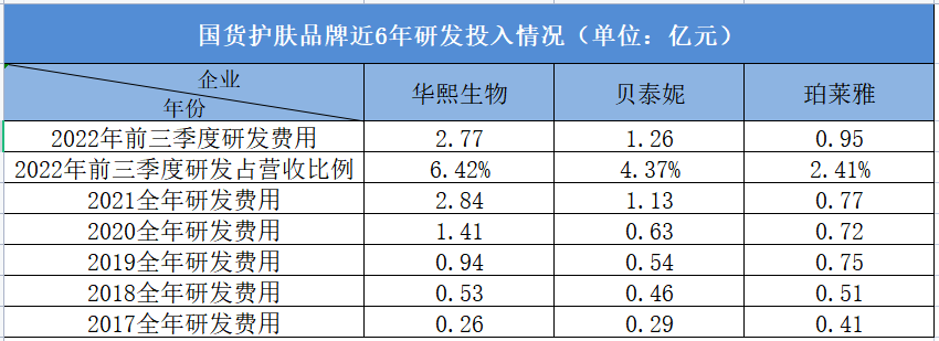 实现从“网红”到“长红”,国货崛起之下,科研投入成为本土品牌发展的关键驱动力,从几大上市公司财报皆可窥见。财报数据显示,三家企业的研发投入基本在逐年增加,将科研力有变现为产品力。