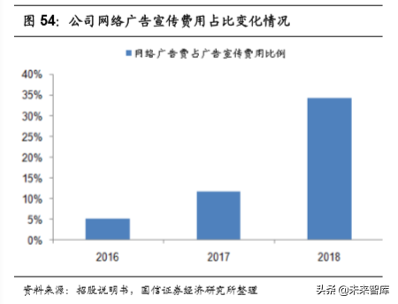 公司此前主要为卫视节目,去年开始投向网络节目,整体来看其媒介的选择还 是符合所面向客群的主要娱乐接受方式。去年以来通过在网络视频中的热播电 视剧和综艺栏目插播广告等方式,进行多角度、的品牌推广,网络广告 费用由 17 年的 3391.80 万元增至 1.33 亿元。但整体来看,公司在社交媒体或 者事件营销层面的布局仍相对较少。