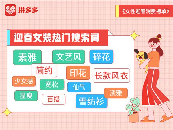 “年轻的女性消费者已成为平台新一代消费群体中的主力军。在百亿补贴与节日促销优惠的双重加持下,上百款国潮服饰、美妆单品在春节后至三八妇女节期间较上年同期增长超,‘她经济’已在拼多多平台持续点燃。”拼多多新消费研究院研究员陈辰表示。