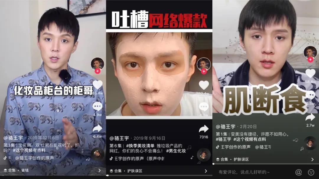 从2019年10月开始,白兔视频旗下KOL骆王宇“骆大娘”戴着一头假发,凭借曾经的化妆品柜哥身份和对网红化妆产品的专业科普,一夜间涨粉100w+。其中关于山寨版酒粕面膜、网红维E身体乳的揭秘和辟谣得到抖音消费者的热捧,可以说白兔视频旗下的一批KOL满足了消费者在美妆品类上“反割韭菜”和“反智商税”的需求。
