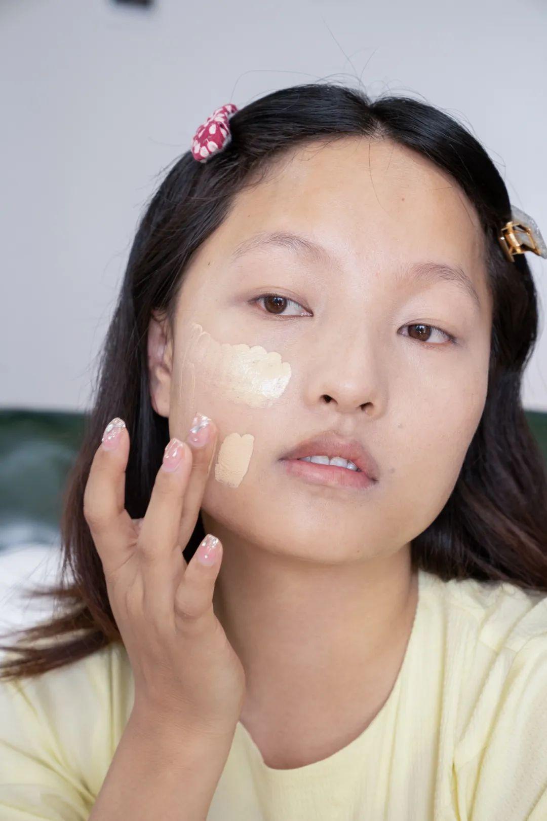 夏天大家都会穿一些吊带、大领口的衣服,所以不要一味地追求变白,而是选接近肤色的色号,不然就会出现脸和脖子之间会出现大断层色差。