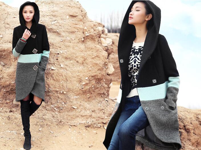 毛呢外套中长款,韩版修身茧型拼色学生显瘦呢大衣,超有复古范儿的茧型,一款超有型的呢大衣,做工精细,细节彰显品质~