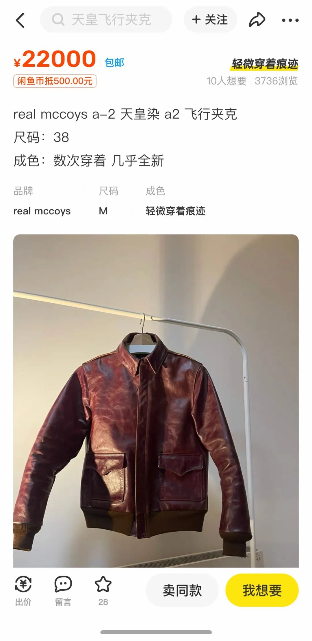这件天皇染皮衣以40万日元不含税(约合19716元人民币)的发售价成为The Real McCoy's有史以来贵的单品之一。