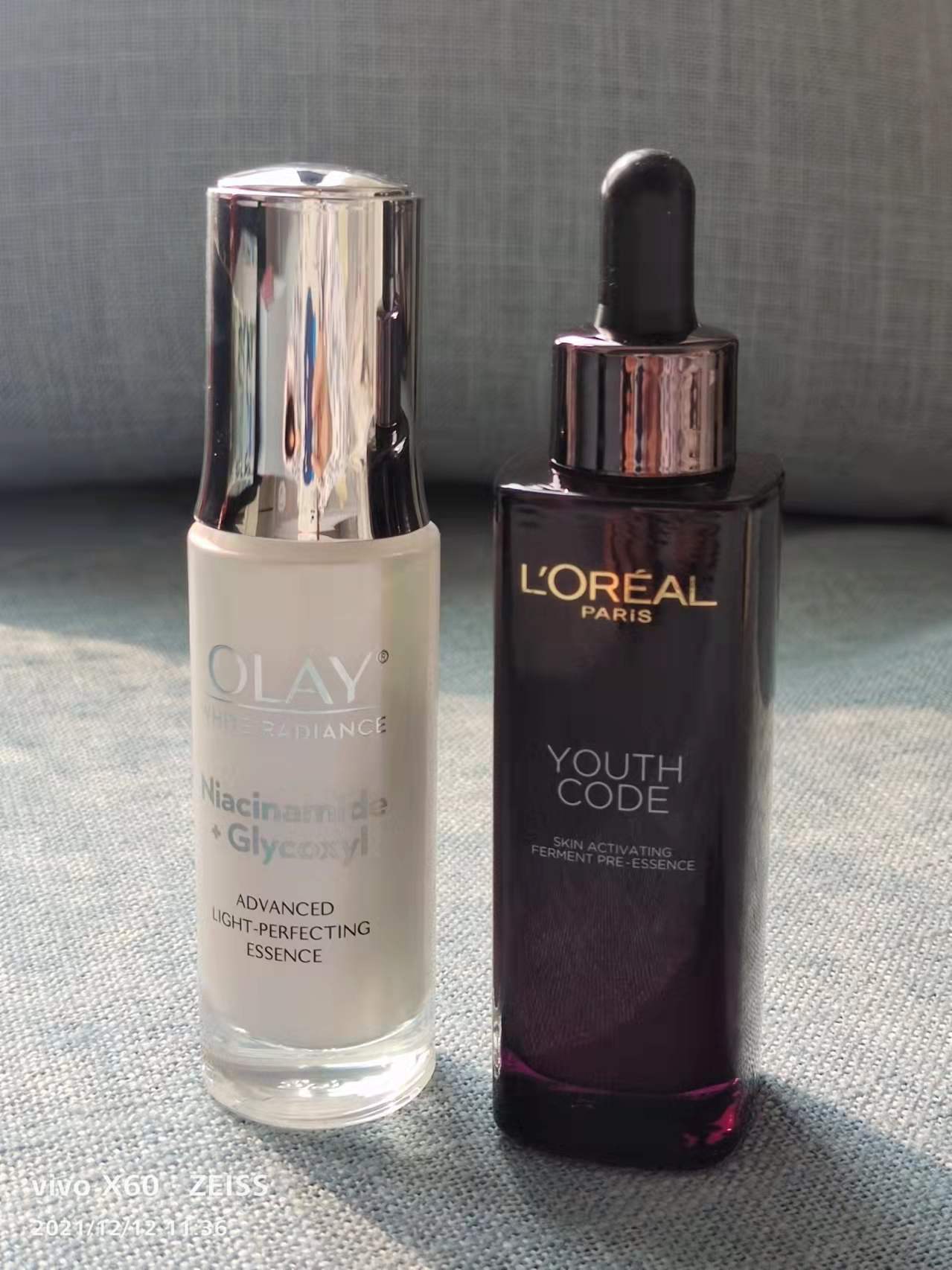 精华用了两种,欧莱雅小黑瓶精华肌底液、Olay抗糖小白瓶,都是两个品牌的爆款口碑产品了。