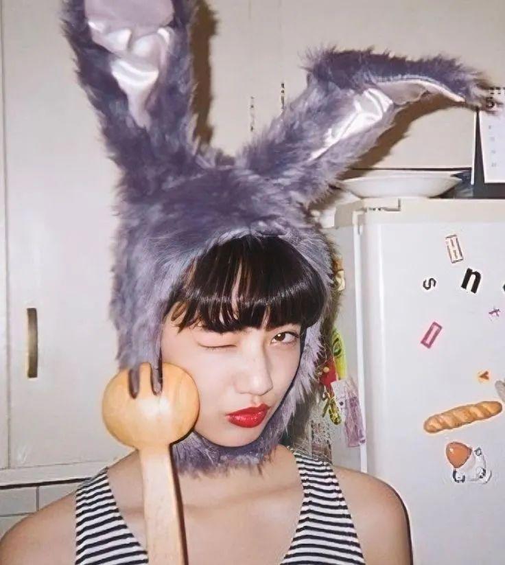 兔子帽子用来拍照也是好造型的,小松菜奈戴着灰色兔子帽拍的胶片就经典。