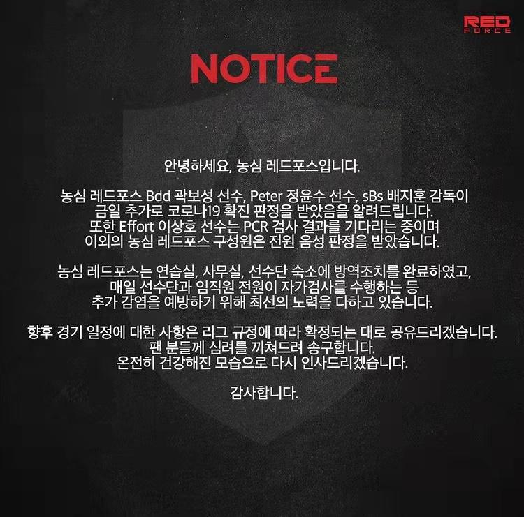 NS战队发布紧急公告,称队内三人感染新冠近日,LCK赛区的NS战队紧急发布了一篇公告。公告中称,队内的Bdd、Peter选手均感染了新冠,而裴志勋监督也不幸中招。目前,部分选手的PCR结果还在等待当中,其他职员的测试结果全部为阴性。