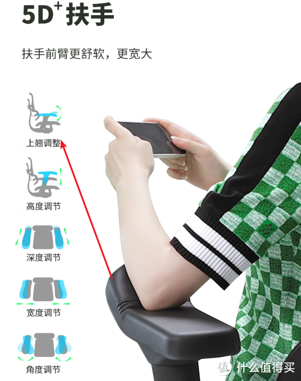 还有这款椅子的扶手我看了一下,调节性确实挺丰富,名为仿生关节扶手