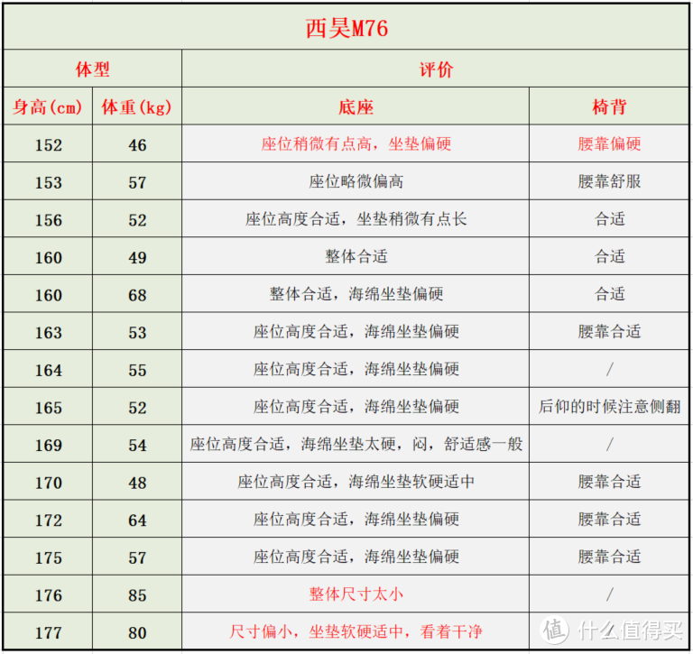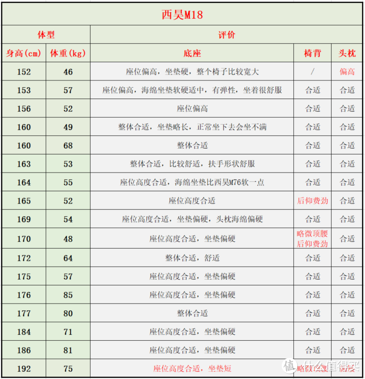 我把当初第一次坐的记录放在下面,整体合适的(包括头枕),就享耀家那几把椅子,还有西昊V1,其他的都差了点。