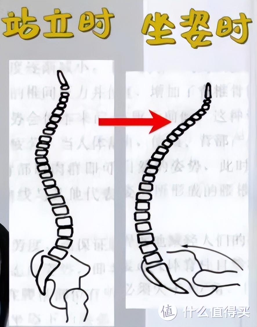 而我们坐下来的时候,就会打破这个平衡,从健康的S形变成了C形
