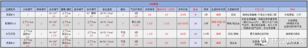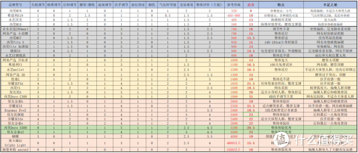 西昊Doro S300:3299元保友金豪e2代:3588元蝴蝶:4088元奥卡姆拉 Sylphy Light:4619元赫曼米勒 aeron2:5580元这几把椅子的调节性方面的评分(客观)+我个人的评分(主观)如下图