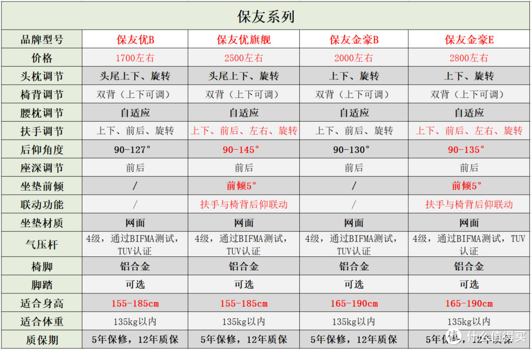 1、久坐、大体重、有过腰突、腰肌劳损的人群,考虑享耀家2、体型正常/偏瘦,追求柔软舒适感的,选择保友(165cm以上男生选金豪系列,155cm女生选择优系列)3、有午休后仰看剧/玩手游,对扶手有极高要求的,考虑西昊Doro C3004、3000元以上