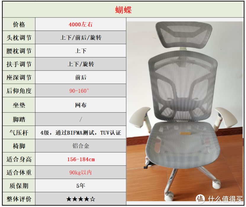 优点:坐感舒适,后仰流畅顺滑不足之处:整体没什么瑕疵(3)蝴蝶适合身高 160-184cm,90kg以下,价格 4000 左右