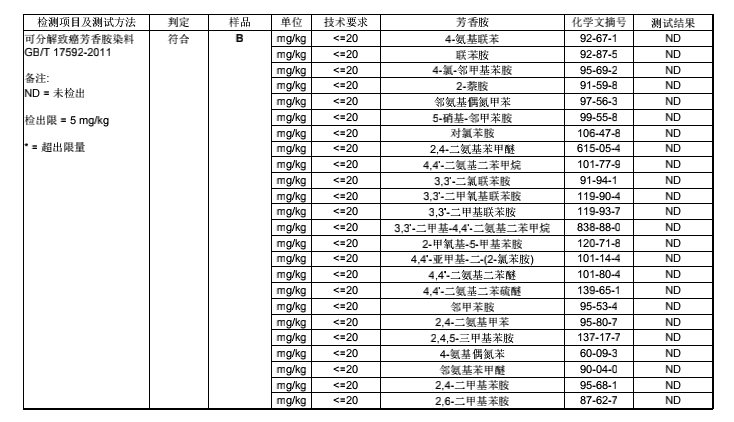注:检测报告由品牌方提供,为实验环境下检测果,仅针对送检样品。