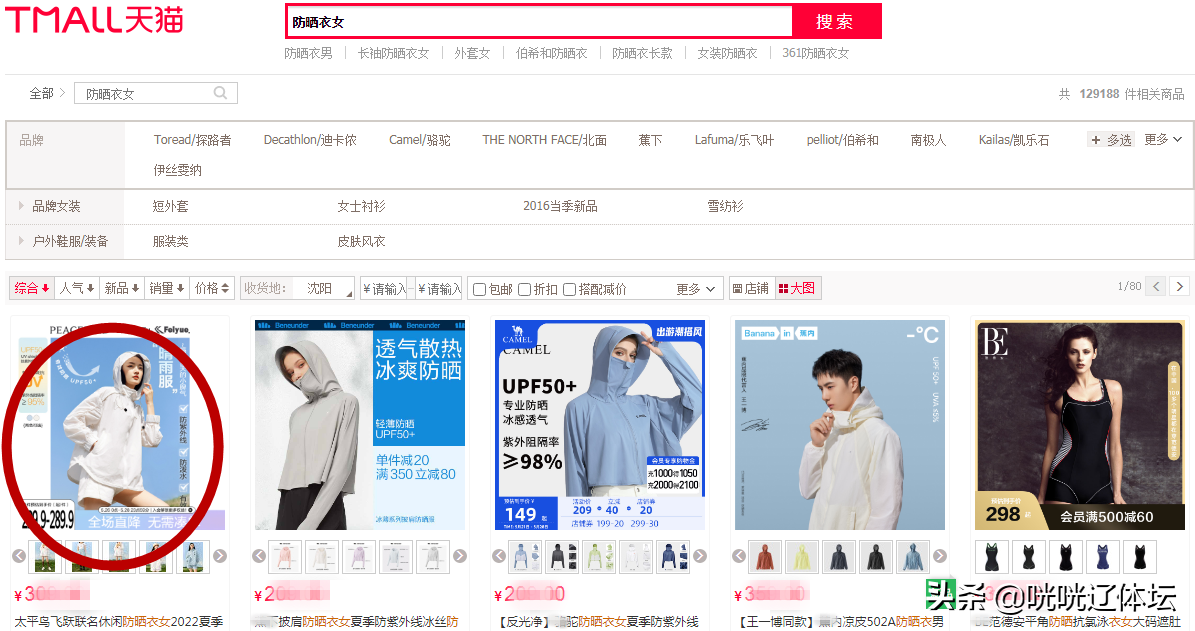 防晒服中多为B类产品,但C类产品真是不少。在天猫上搜索【防晒衣女】,出现的第一款商品就是C类产品。