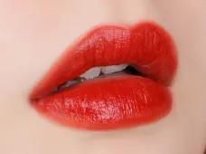 厚涂是很正的番茄红,浓郁,完全就是颗大番茄在你嘴上的感觉,而且虽然颜色比较亮但不会有攻击性的感觉,整体显白显气质。