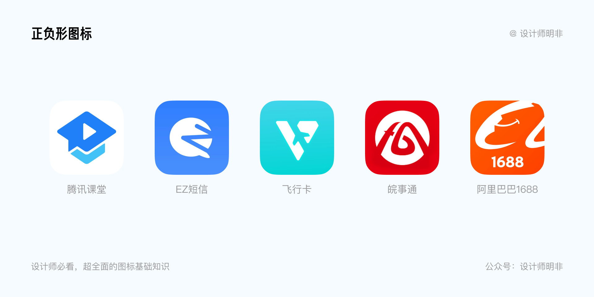 8. 正负形图标正负形的设计在LOGO图形设计中是比较常见的表现手法,运用在图标设计中,以正形为底突出负形特征,以负形表达产品属性。利用正负形进行设计,图形设计感较强,正形与负形可以更加充分地表达产品特征与服务。