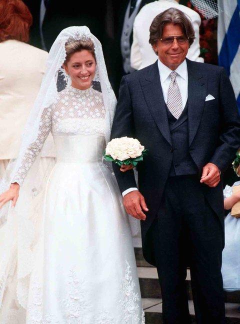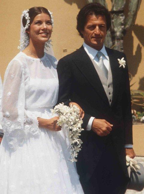 卡罗琳公主(格蕾丝•凯利的女儿)在婚纱上好像吸取了一些她妈妈的元素,但是又完全不一样。这位新娘身着可爱的70年代礼服,配以花朵头冠。鲜花有时候比钻石更美。