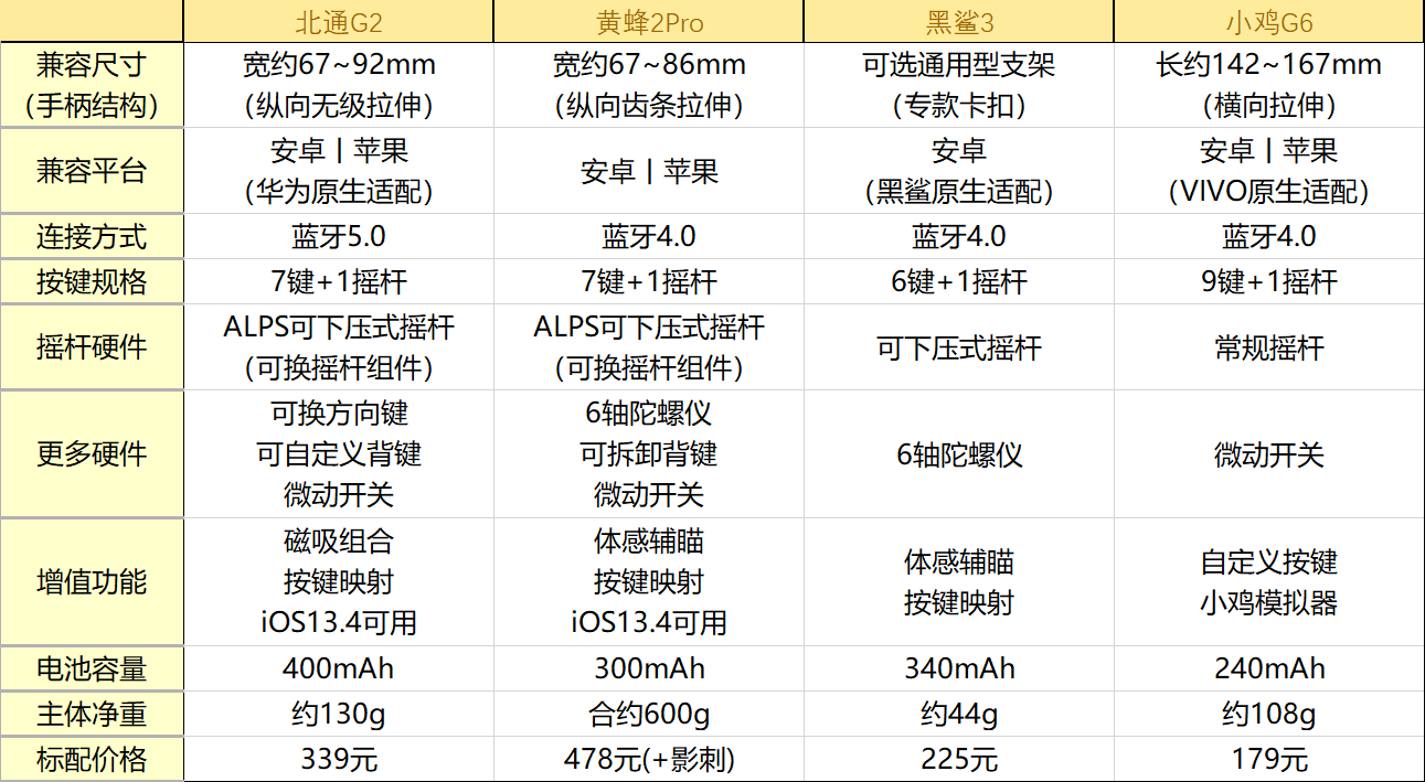 总结上面的几点,再加上价格因素,北通G2的在软硬件都有着不错表现的同时还有着性价比的售价,比较值得推荐。对于非iPhone用户,尤其是黑鲨手机用户,购买黑鲨手柄也是一个不错的选择。选购黄蜂2 Pro的玩家建议再增加预算搭配影刺一起,不然感觉不如北通G2好用。