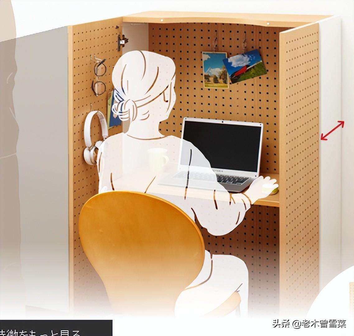 打开状态下,有一处小台子可以放下笔记本办公,通体洞洞板的两侧和正面都可以实现收纳,但可能摆个台灯都会拥挤,不过我认为确实属于一种小户型创意,在日本房间狭小的公寓意外得有市场,我认为有趣。额外提一句,这款像家具的“文具”,日本售价30000日元,折合1500人民币。