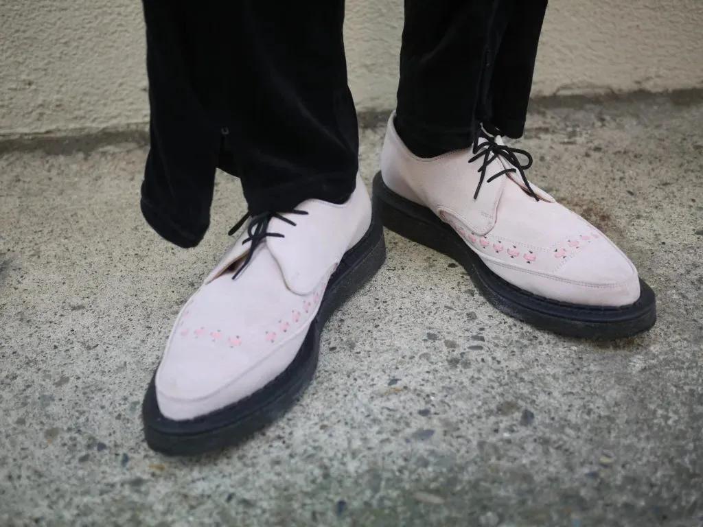George Cox 的 Brothel Creeper 有着十分的特点,“尖头厚底”。