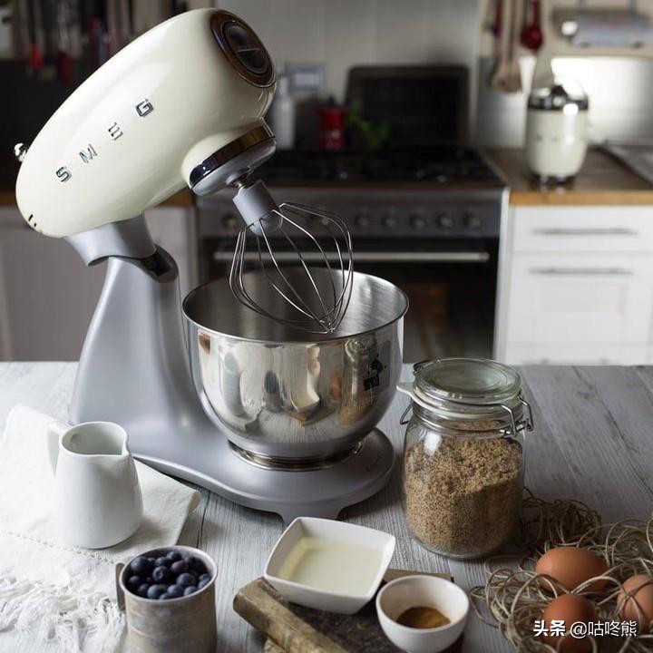 5种颜色(奶白、黑、红、淡蓝、淡粉),4.8L容量,直流电机,功率800W,金属外壳,10档,复古设计,SMEG是妥妥的品牌,国外的专卖店有很多限量版。