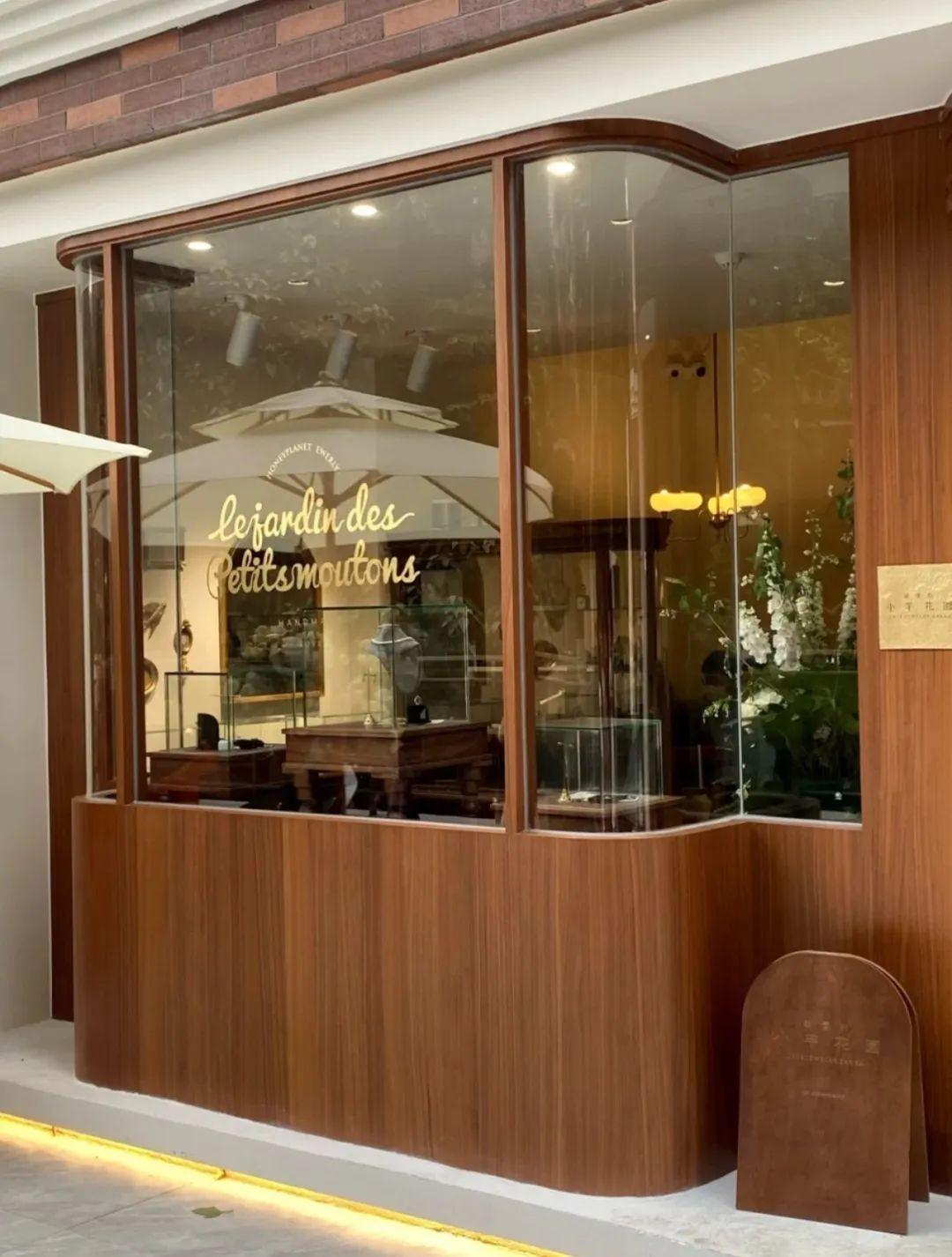 采用原木色设计,门口是电影同款复古旋转门,为吸引人眼球,还摆着各种花作为视觉点缀,法式,好浪漫~