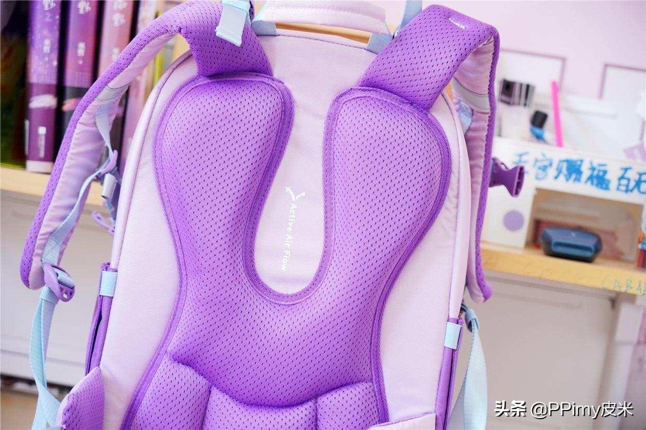 书包S型设计的肩带符合人工学,厚厚的海绵也起到一定的缓冲作用,让孩子背着舒服。到了夏天这样有内凹的设计,还可以起到一定的通风作用,让孩子背面不会那么的热,空气流通的重要。